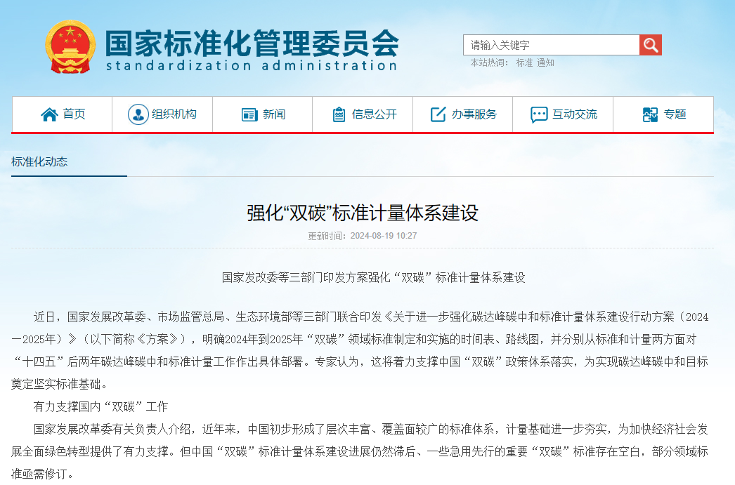 国家发改委等三部门印发方案强化“双碳”标准计量体系建设
