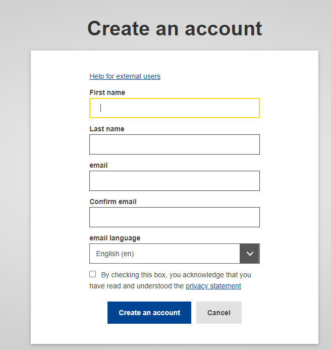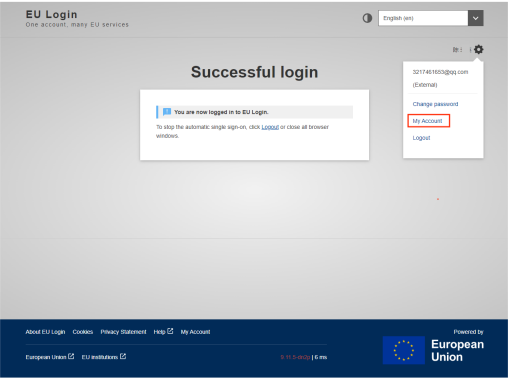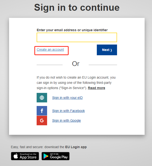 打开浏览器,访问https://webgate.ec.europa.eu/cas/login,登录“步骤一”注册的 EU 账号。