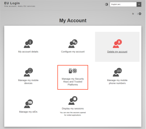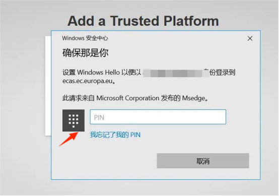 2、登录EU Login账号,选择“Security Key or Trusted Platform”验证方式,用电脑的 pin 密码,或电脑面部识别、指纹识别登录。