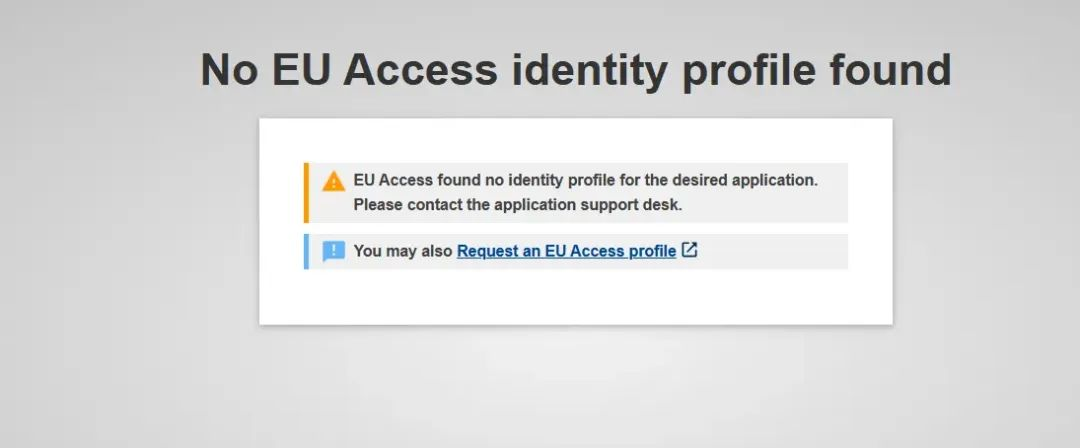 3、请求欧盟访问权限,网页会指示找不到“无欧盟访问权限的身份资料”,此时单击 “请求欧盟访问权限”。