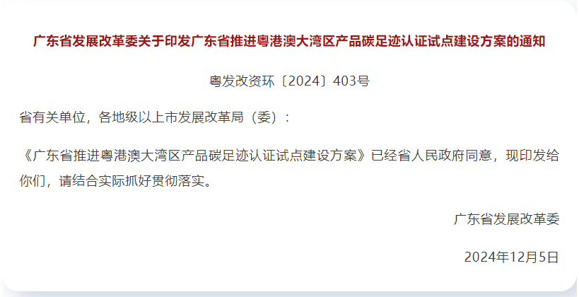 广东省推进粤港澳大湾区产品碳足迹认证试点建设方案
