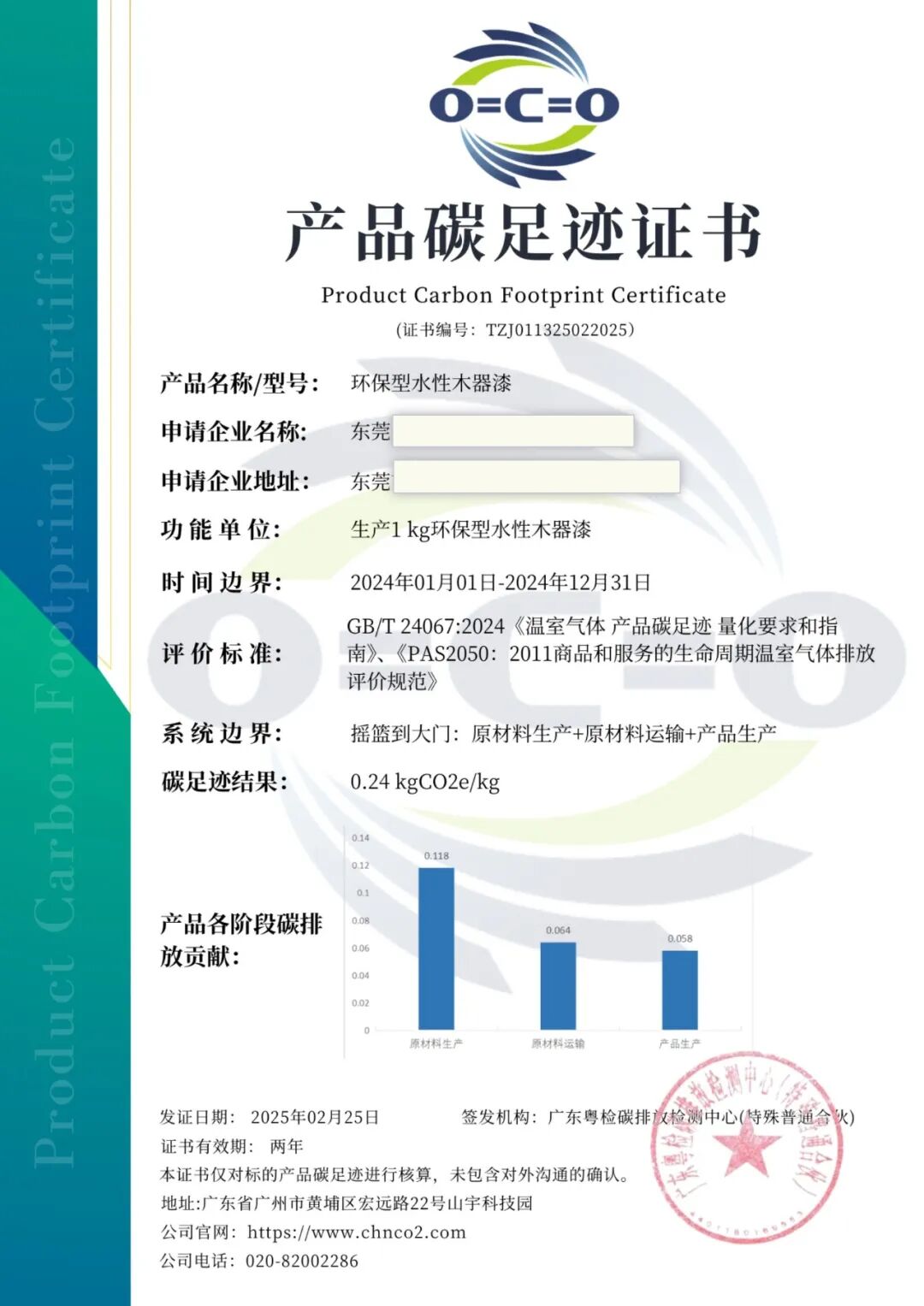 在全球聚焦环保、积极应对气候变化的当下,产品碳足迹的重要性愈发凸显,它就像一把精准的 “标尺”,能清晰衡量产品在整个生命周期内对环境气候变化的影响。东莞某涂料有限公司委托我司量化旗下“生产1 kg环保型水性木器漆”的碳足迹,量化产品碳足迹报告及证书已成功交付。