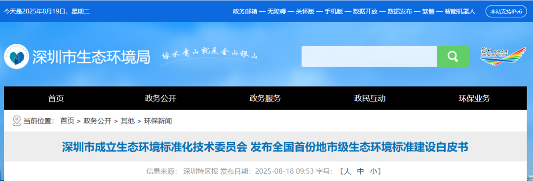 8月15日,值此全国生态日之际,深圳市生态环境标准化技术委员会(以下简称“深圳环标委”)正式揭牌成立,并同步发布全国首部系统展现城市级生态环境标准建设成果的《深圳市生态环境标准建设白皮书》及《深圳市生态环境地方标准建设三年行动要点》。据悉,此次“深圳环标委”成立大会,一方面是宣传习近平生态文明思想及“绿水青山就是金山银山”理念的具体活动,另一方面也是为高标准引领高水平保护、支撑高质量发展提供坚实技术支撑。