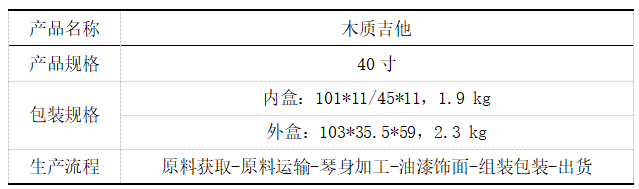 (1) 优化包装设计;吉他产品内外包装均为瓦楞纸箱的快递包装,例如包装材料选择防震的气泡膜+瓦楞纸箱组合,尽量减少瓦楞纸箱的使用。