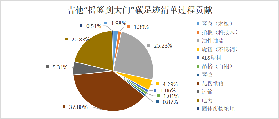 图:一件吉他“摇篮到大门”碳足迹贡献
