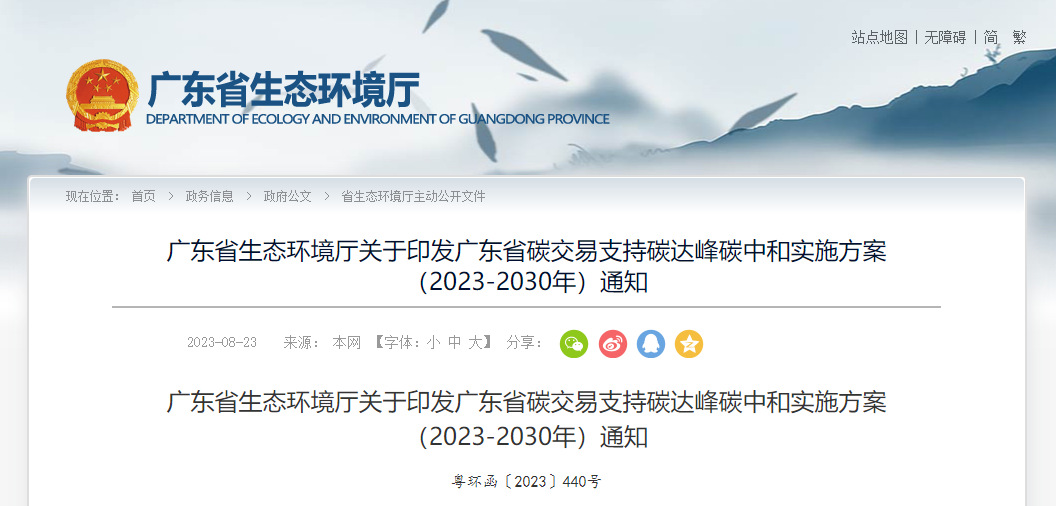 经省人民政府同意,现将《广东省碳交易支持碳达峰碳中和实施方案(2023-2030年)》印发给你们,请认真组织实施。