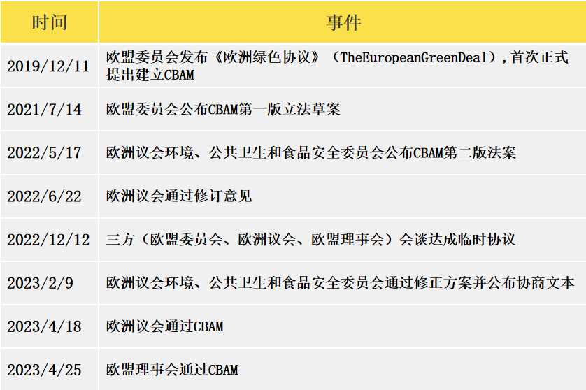 ◆回顾CBAM的立法历程,共经历如下历程: